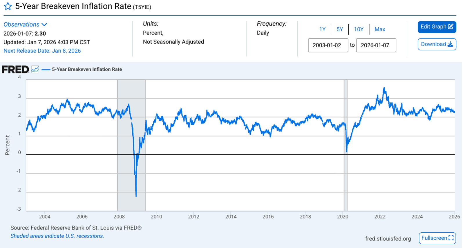 Breakeven Inflation Rate - 5-Year Breakeven inflation rate is now 2.40%. When you study this chart, you’ll see it goes back to 2004. From this past month, the inflation rate has ticked higher.