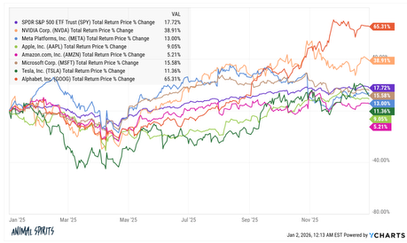 Here’s another common phrase… “I’m just going to own the Mag 7” Well… again, diversification won the day. Not many realize that only two companies, Nvidia and Google beat the S&P 500, and in the prior chart, international beat the S&P 500!