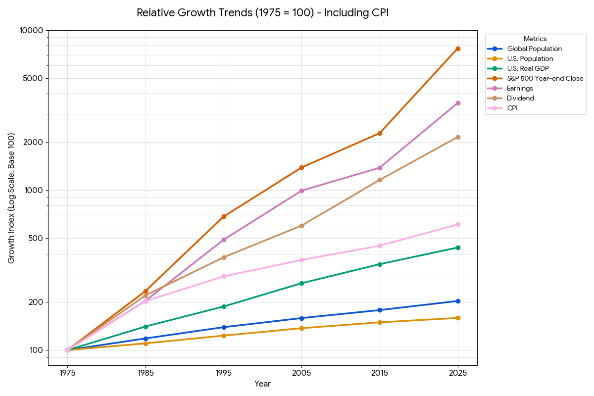 S&P 500 - In 1975, the S&P 500 was around 90; today it’s nearly 7,000. This has likely been the greatest source of wealth creation the world has ever seen. I’d argue we live in the most "democratized" era of investing in history. In 1975, buying stocks required a high-priced broker and expensive commissions. Today, anyone with internet access can own a piece of the 77x growth engine with $1 and zero commissions. Broad market investing has likely never been more available.